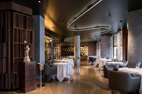 Restaurant Fred heeft gloednieuw interieur, dat een warme, stijlvolle en eigentijdse uitstraling heeft met opvallende elementen die meteen in het oog springen. Bijvoorbeeld de plafondgemonteerde lichtbronnen en bladgouden kunstwerken. In de inrichting is er gekozen voor warme tinten grijs en bruin, speciale materialen en comfortabel meubilair.